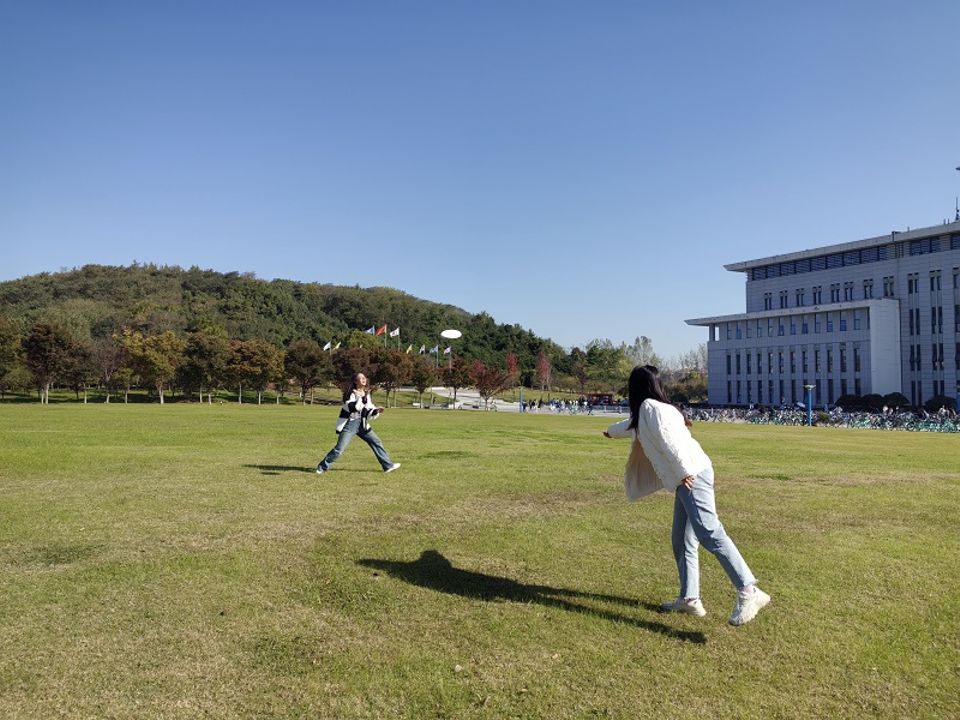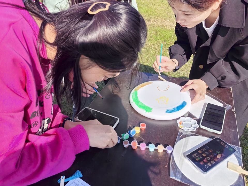 本次活动主要有三个环节:漆扇创作、飞盘与文化衫DIY设计和飞盘互动游戏。漆扇创作让研究生们在传统工艺之美中感受文化自信;飞盘与文化衫DIY设计让同学们展现独特创意;飞盘互动游戏让研究生们在运动与交流中感受艺术魅力。活动现场气氛活跃,同学们创作热情高涨;仙林校区图书馆前大草坪,处处洋溢着青春活力与创意激情。