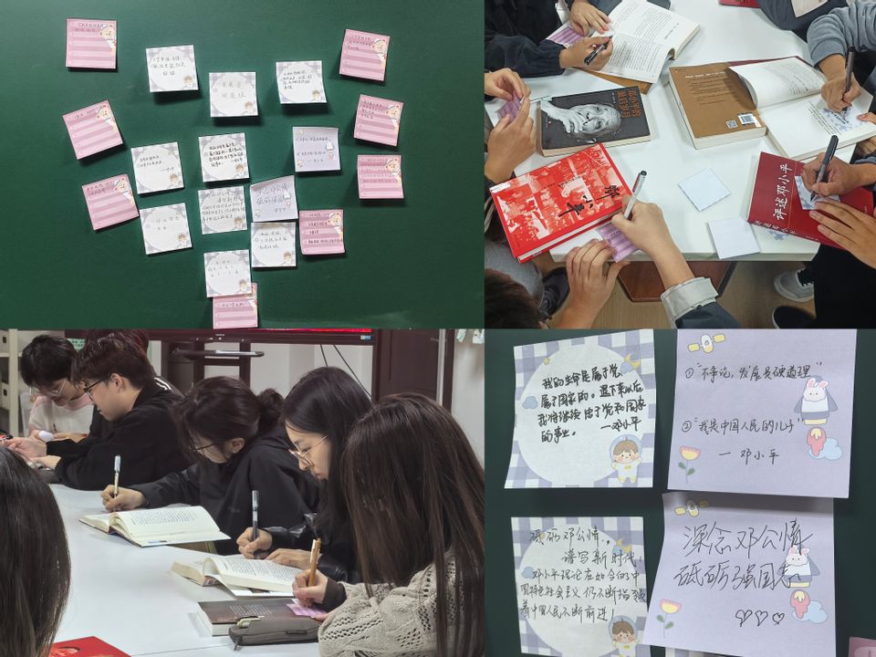 留下一张心灵印记。邓小平同志对共产主义远大理想和中国特色社会主义信念无比坚定的崇高品格、对人民无比热爱的伟大情怀、始终坚持实事求是的理论品质、不断开拓创新的政治勇气、坦荡无私的博大胸襟深深打动着每一位党员的心。学习交流结束后,支部成员通过文字的形式,在便利贴上记录本次党日活动的心得感悟,更加坚定了为党的事业贡献力量的决心。