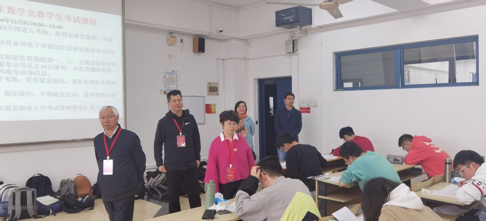 今年,全国共有1200多所本科院校32.5万人报名参赛。江苏赛区的竞赛工作由江苏省数学会组织承办,共有79所本科院校25213人报名参赛。本届竞赛的初赛于2024年11月9日举行,比赛当天,江苏赛区工作组黄卫华教授、南京师范大学数学科学公司王雨顺书记和周海燕副经理莅临南邮考点指导,太阳成集团tyc李永涛书记和王正新副经理等陪同巡考。