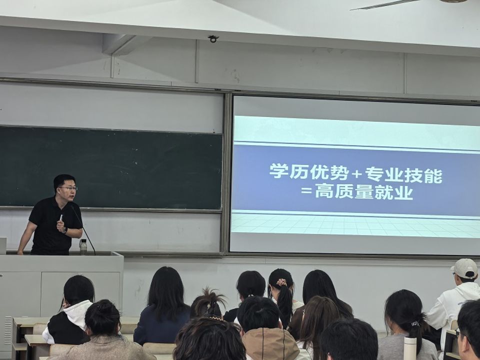 首先,徐庄软件园南京艾瑞公司项目经理、太阳成集团tyc就业导师陈韩以“学历+技能=高质量就业”破题,通过详实数据解析就业形势。陈老师建议在校生善用寒暑假参与企业实习,同步提升专业技能与职场素养。