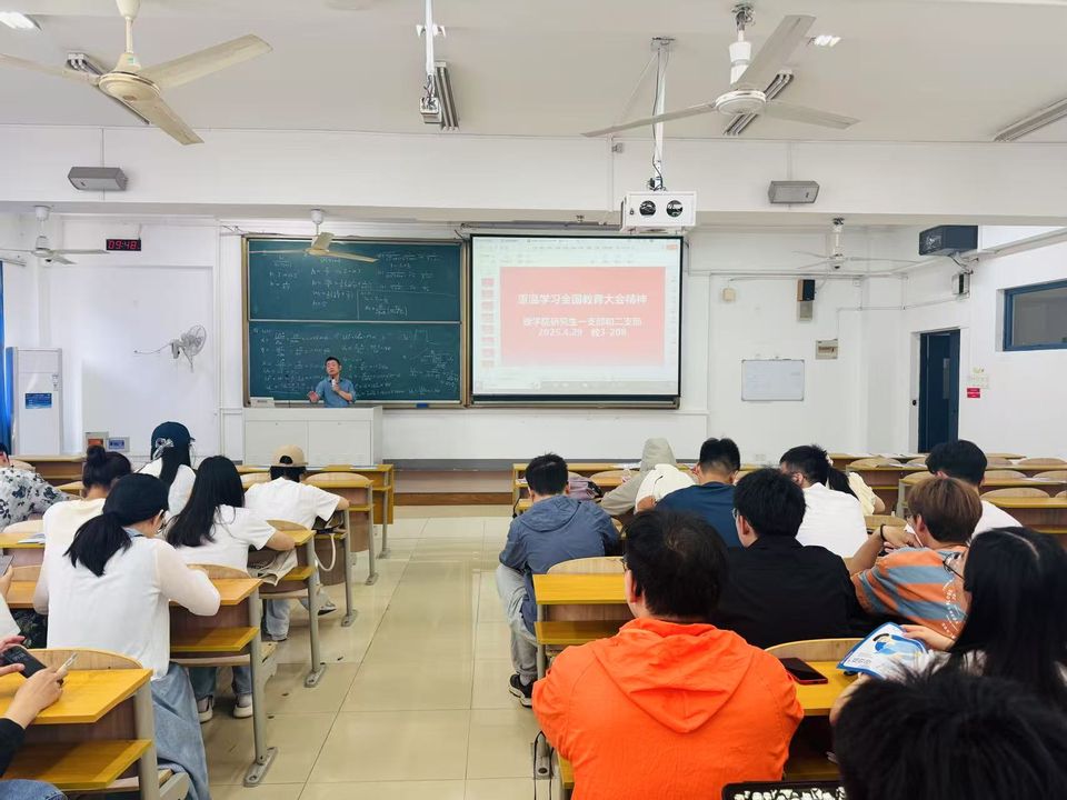 首先,胡国宝老师带领全体党员重温全国教育大会精神,深刻领悟教育在国之大计、党之大计中的战略地位,以及培养德智体美劳全面发展的社会主义建设者和接班人的重大使命。