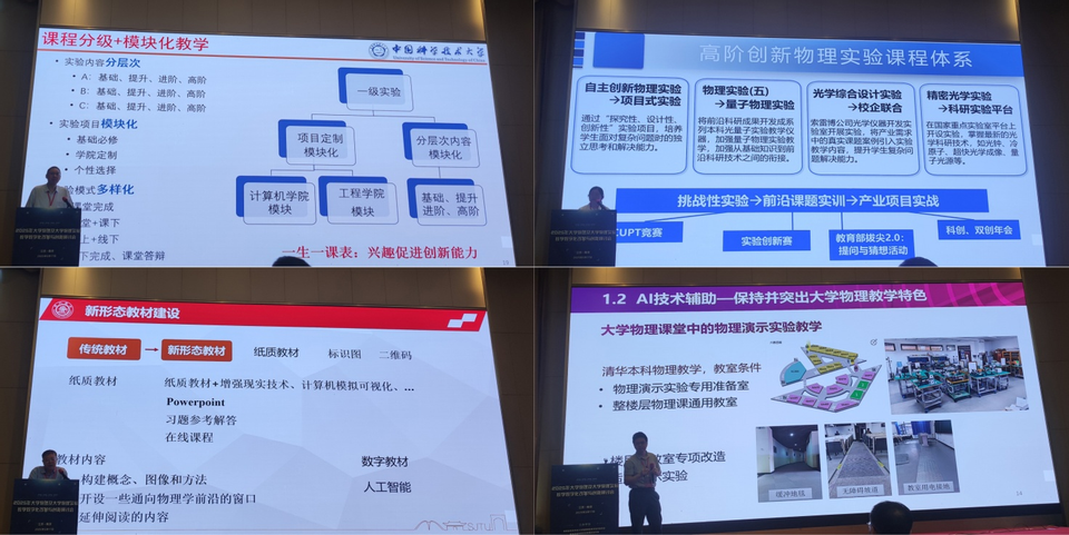 会议期间,中心教师深度参与各项学术活动,积极汲取前沿教学理念。在专家报告环节,中国科学技术大学张增明教授所作的《变革时代的实验物理教学》大会报告系统介绍了老员工物理学术竞赛(CUPT)的经验做法,为中心实验教学创新提供了重要参考;华东师范大学陈丽清教授所作的报告《本科量子物理实验课程建设》则让与会人员对近代及前沿物理实验课程体系优化有了全新认识。此外,多位专家在报告中均强调人工智能(AI)技术对现代物理实验教学、课程建设及创新人才培养的深远影响,为中心未来推进数字化教学指明了方向。