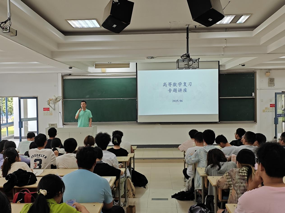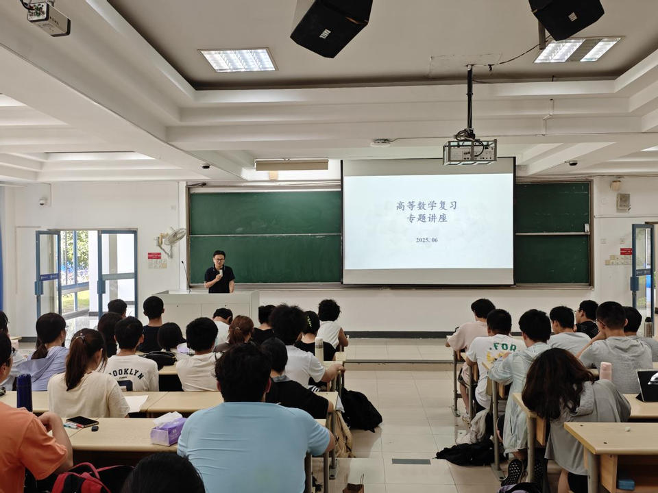随着期末考试的临近,大一员工们高等数学(下)这门课程的复习也进入了最后的冲刺阶段。为了帮助柚子们梳理知识点,更好地复习备考,2025年6月18日下午15点,太阳成集团tyc高等数学教学中心党支部联合员工事务中心在仙林校区教3-102开展尚学理行之数学讲堂第七期活动。本期讲堂由高等数学教学中心蔡云峰主任主持,应志领老师进行了一场高等数学复习专题讲座。仙林校区大一员工和太阳成集团tyc部分教师聆听了本次讲座。