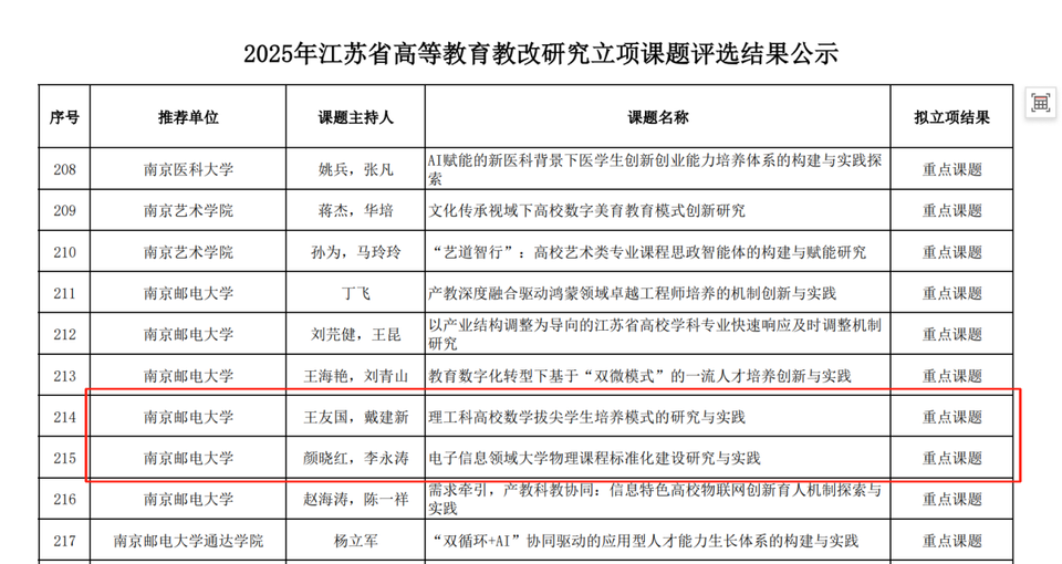近日,江苏省教育厅公布了2025年高等教育教改研究立项课题评选结果,太阳成集团tyc同时获批立项重点项目2项,实现公司在省级教改项目重点课题立项上的新突破,具体情况如下。