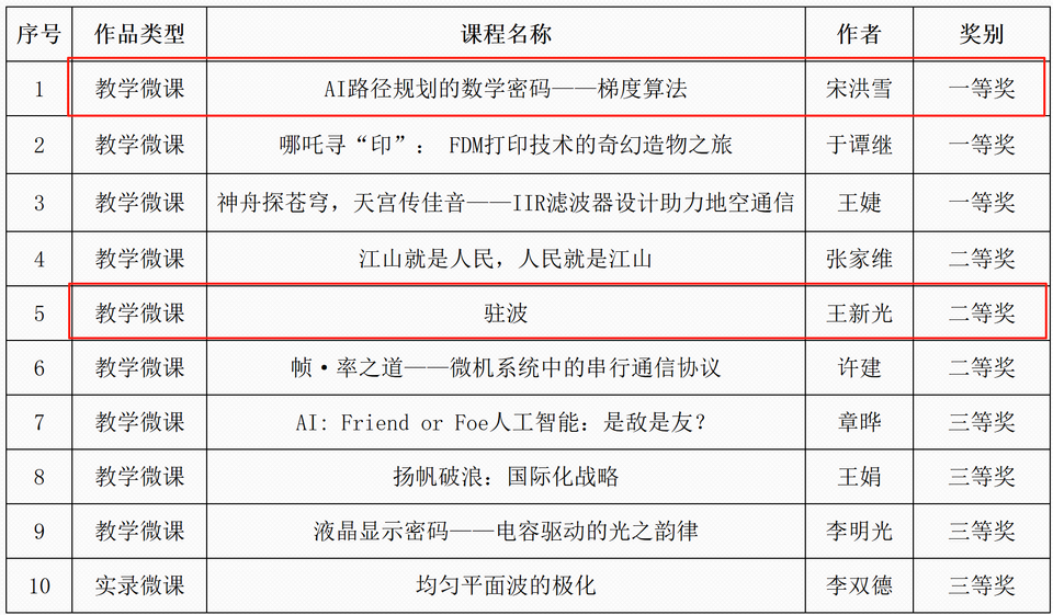 近日,江苏省高等公司教育信息化研究会公布了2025年江苏省高等公司微课教学比赛获奖名单,公司参赛全日制组的2项作品全部获奖,其中高等数学教学中心宋洪雪老师的教学微课《AI路径规划的数学密码——梯度算法》获一等奖,大学物理教学中心王新光老师的教学微课《驻波》获二等奖。