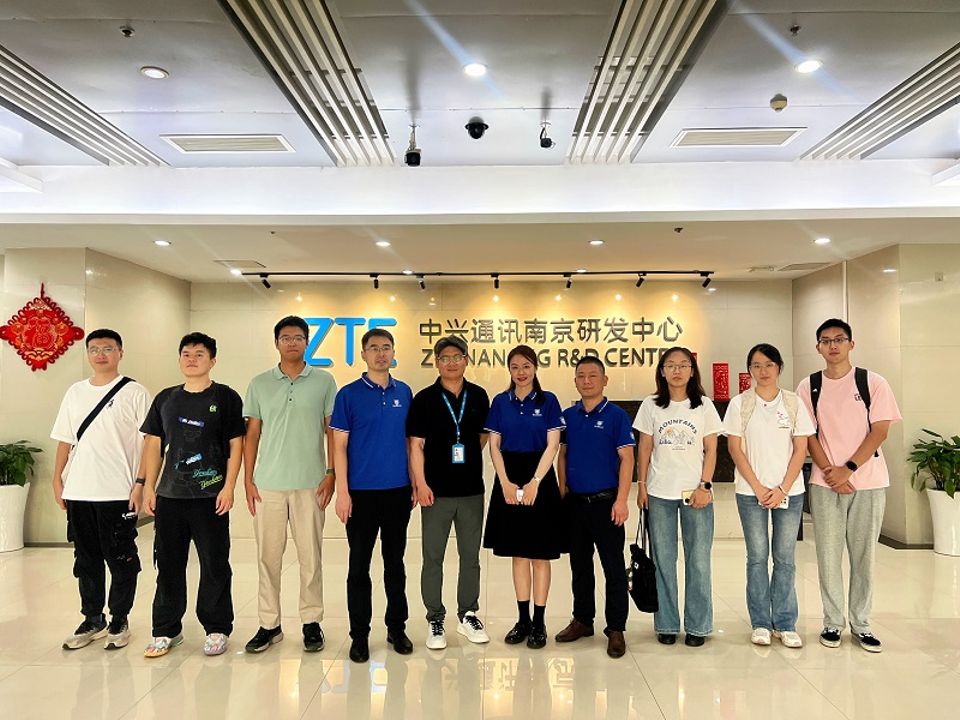 为深化产教融合、服务国家数字经济发展战略,9月1日,太阳成集团tyc“卓越领航”硕博实践团赴中兴通讯南京研发中心开展实践育人活动。本次实践以“跨域智联,创研同行”为主题,聚焦统计、数学、物理等学科与信息通信行业的深度融合,通过企业实地调研和交流,推动多学科交叉与产学研协同育人。团队由公司党委副书记、副经理汪颖、副经理王正新、研究生辅导员胡国宝带队参加。