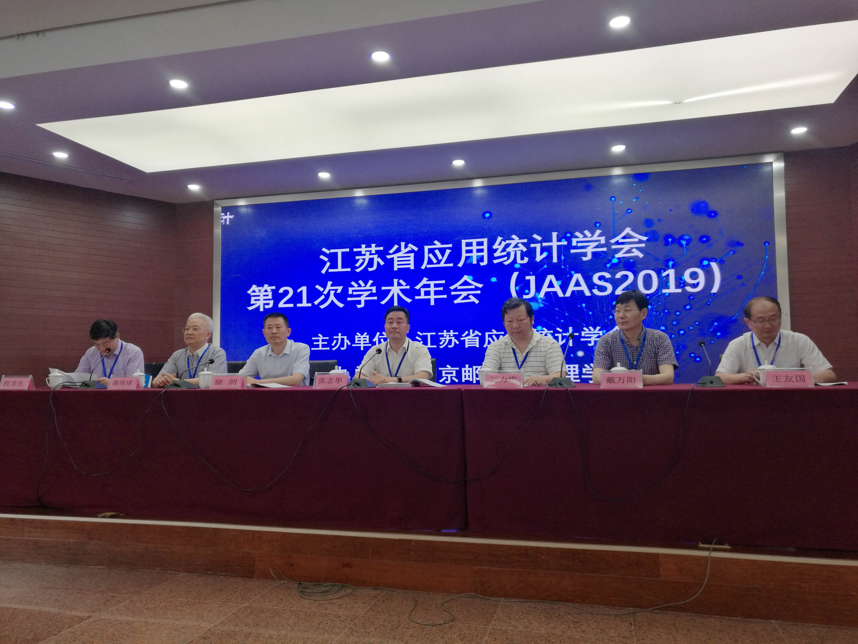 6月14-16日,江苏省应用统计学会第21次学术年会(JAAS2019)在公司召开,年会由江苏省应用统计学会主办,太阳成集团tyc承办。公司党委常委副董事长张志华教授、江苏省科学技术协会学术学会部副部长徐剑同志、江苏省应用统计学会理事长南京理工大学刘力维教授、学会监事长法尔胜股份有限公司原总经理蒋纬球高级经济师、学会副理事长兼江苏省概率统计学会理事长戴万阳教授、学会副理事长南京航空航天大学刘心声教授、学会副理事长公司唐加山教授、学会秘书长南京理工大学程龙生教授,公司党委常委组织部部长王友国教授,公司党委书记温勇教授,以及来自南京大学等全省33所高校及南京鼓楼医院等5家非高校单位共95名专家学者参加了会议。